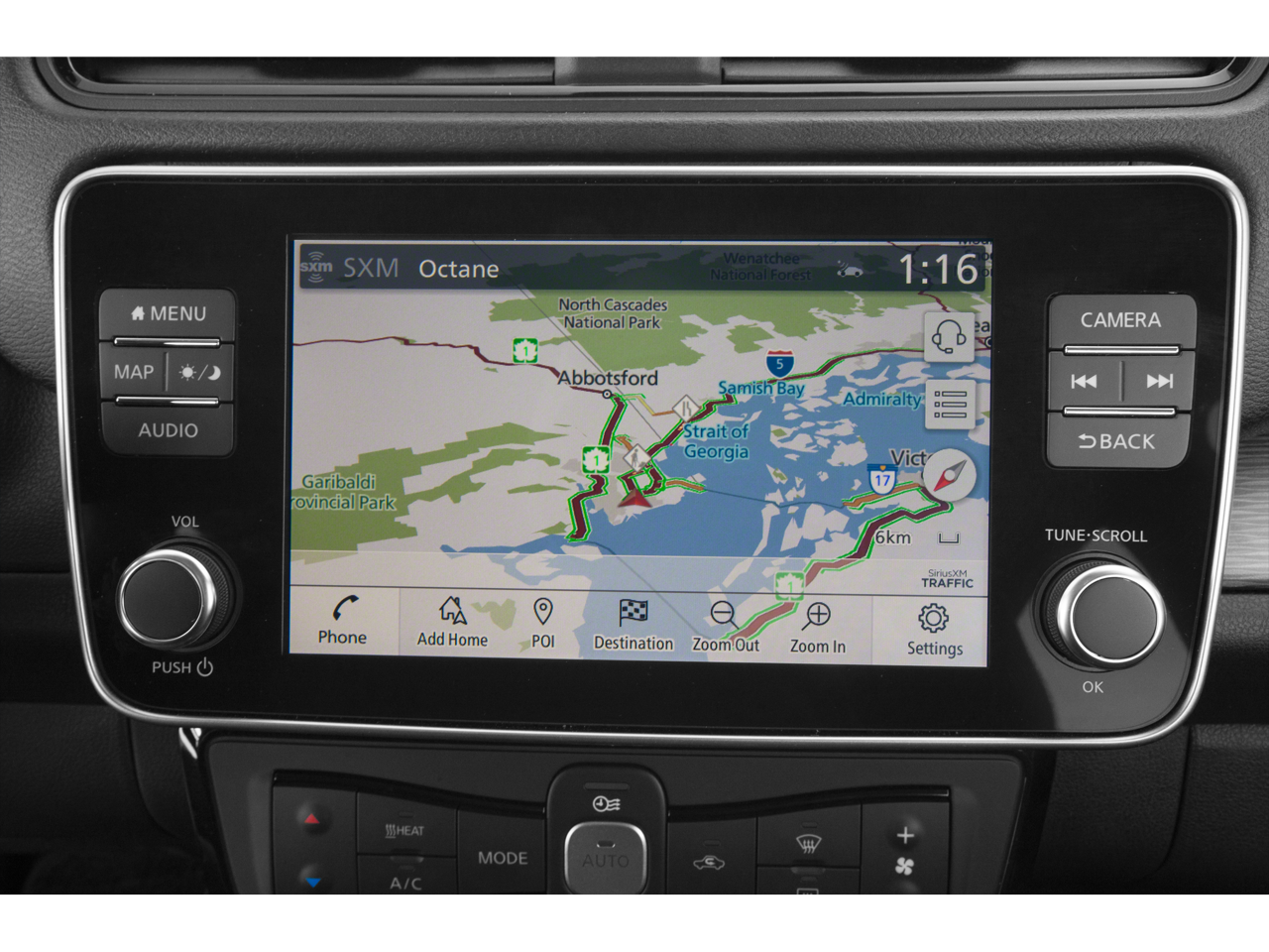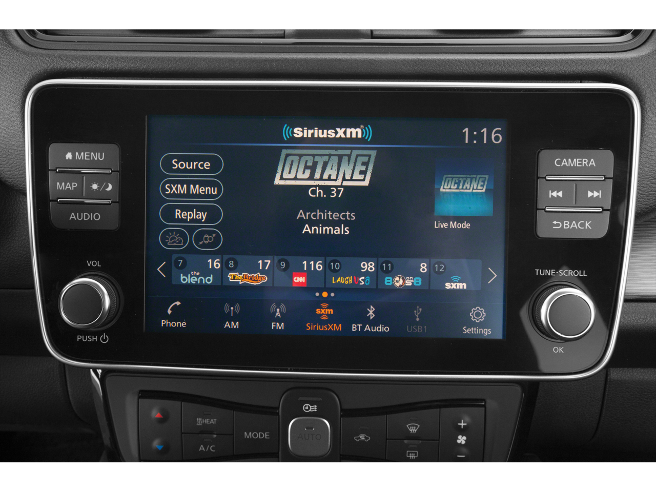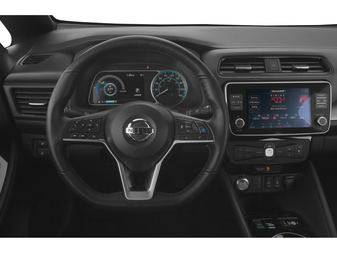 - Radio: NissanConnect EV w/Nav/Bose Premium Audio -inc: 8" color display w/multi-touch control, Nissan door to door navigation w/3D building graphics and satellite imagery, connected navigation features including online POI search, online premium traffic information, Over-the-Air (OTA) updates for head unit firmware and navigation map software via a Wi-Fi WPA2 connection, Apple CarPlay, Android Auto, HD Radio technology, SiriusXM radio w/advanced audio features, SiriusXM Traffic, SiriusXM Travel Link (weather, movie listings, stock info, sports and parking), USB connection port for iPod interface and other compatible devices, Bluetooth® hands-free phone system, streaming audio via Bluetooth®, hands-free text messaging assistant, remote battery status check, remote start charge, remote climate control on/off and 7 speakers