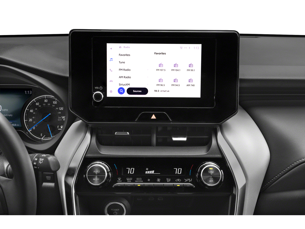 - Radio: Audio Plus -inc: 8" touchscreen, AM/FM/HD Radio, 6 speakers, navigation system, 1USB and 1 AUX media port, 3 additional USB charge ports, advanced voice recognition, hands-free phone capability and music streaming via Bluetooth® wireless technology, Android Auto, Apple CarPlay and Amazon Alexa compatible, SiriusXM w/3-month All Access trial, Connected Services - Safety Connect w/1-year trial, Service Connect w/10-year trial, Remote Connect w/1-year trial, Wi-Fi Connect w/up to 2 GB within 3-month trial, See toyota.com/audio-multimedia and toyota.com/connected-services for details